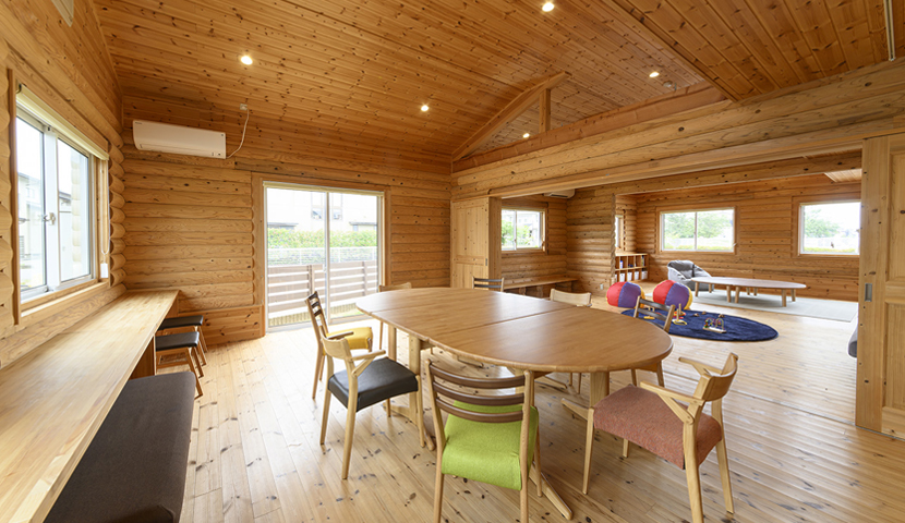 共生型通所介護では、高齢者の方々と障がいをもつお子様たちが共に安心して過ごせる場所づくりを目指していきます。様々な世代の人たちが触れあい、学びあい、支えあうなかで新たな役割の気づきや自己肯定感を高められるようにサポートしていきます。そして、孤独を感じることなく、心穏やかに過ごせる「居場所」を築いていきます。