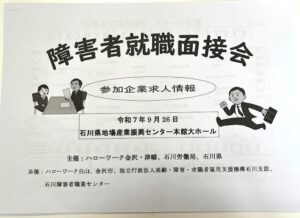 今月は、「会社説明会」や「見学会」があり、「就職活動支援セミナー」「障害者就職面接会」等、就労活動が多い月でした。