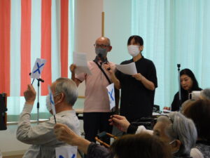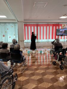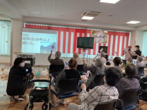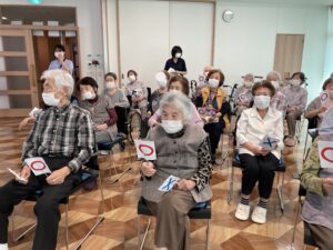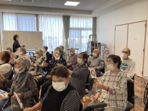 暫し休憩ののち、4階多目的ホールに入居者皆さん一堂に会し