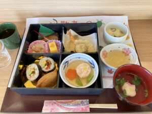 海苔巻き・お稲荷さん・天ぷら・ブリの照り焼き・海老しんじょ・茶碗蒸し 等々‥‥