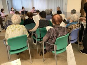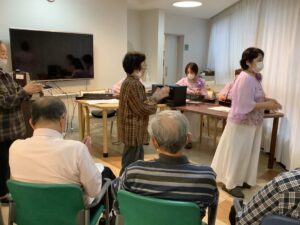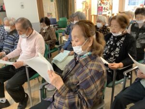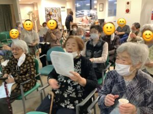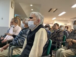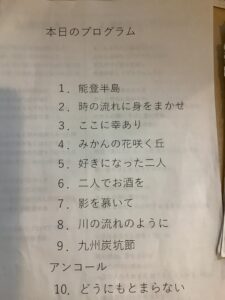 「能登半島」 「時の流れに身をまかせ」「ここに幸あれ」など懐かしい曲が演奏されるとみなさん自然にうたっていらっしゃいました。「九州炭坑節」では曲に合わせ踊られる方も・・・😊