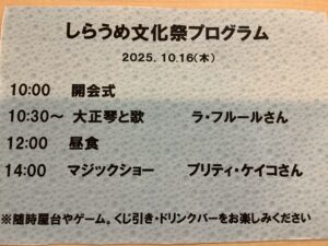 10月16日(木)に「しらうめ文化祭 2025」を開催し、利用者様、地域の方々と楽しい時間を過ごしました。