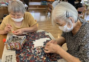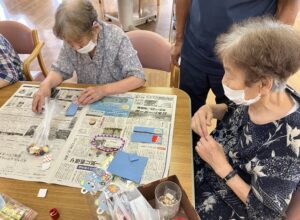 続いて、いろんな色の模造紙をご利用者の皆さんは黙々と細かくちぎっていきます