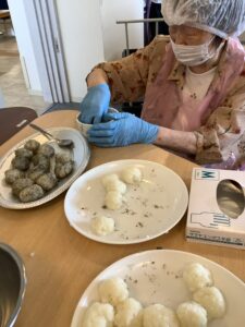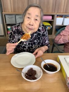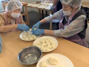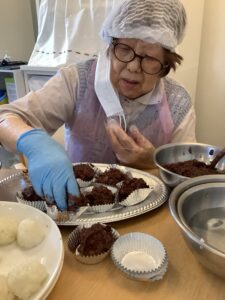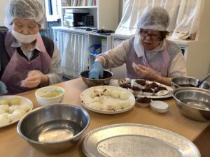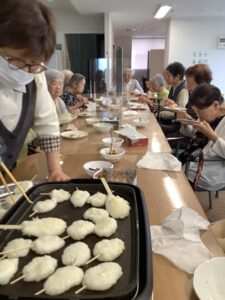 秋のお彼岸にちなんでしらうめではおはぎ作りや五平餅作りに取り組みました。