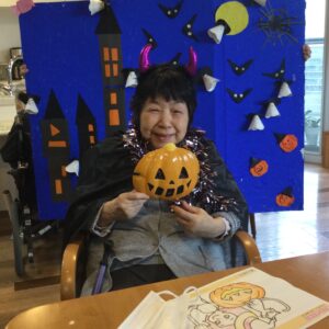 10月には利用者様とハロウィンの仮装を楽しみました。