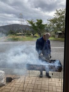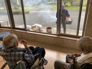 入居者様、焼いているのを興味深く真剣にみられております。