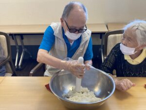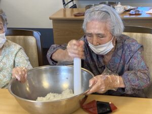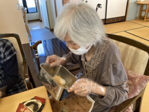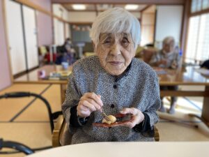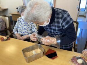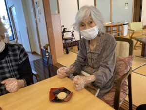 皆さんご自分で作られたおはぎを食べられ素敵な笑顔です。