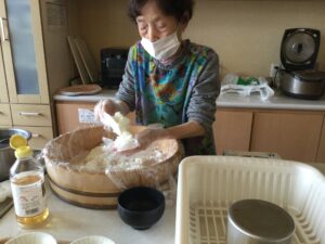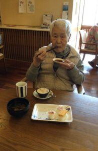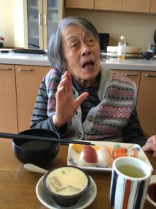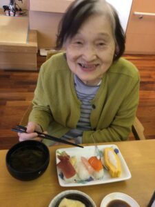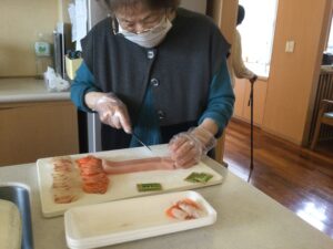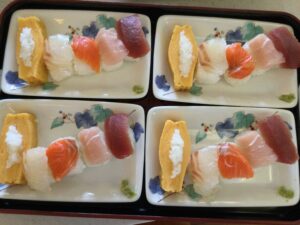 お昼には、皆さんで握ったお寿司がずらりと並び