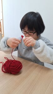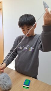 まずは毛糸を巻いて帽子作りから🎵