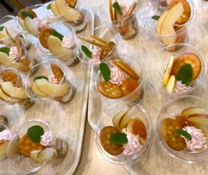 手作りのりんごジャムとクラッカーを添えて飾りつければ