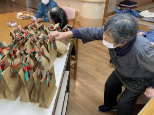 「あら、暖かそうな靴下やわ」「かわいい襟まき(ネックウォーマー)いいね~」と喜ばれている様子でした🥰
