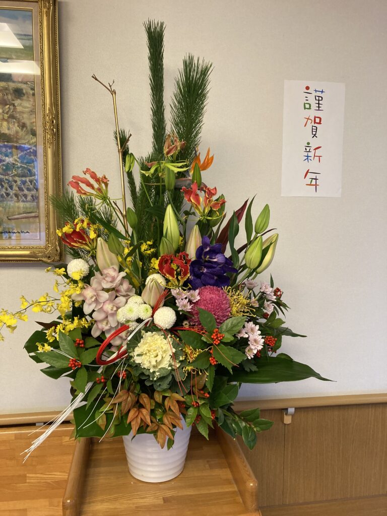 今年の正月のお花は華やかな仕上がりにしていただきました。