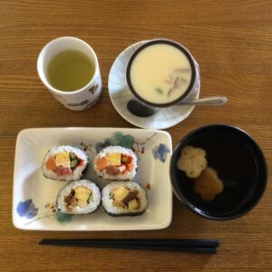 昼食に恵方巻を恵方に向いて