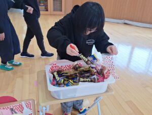 正解するとチョコレートつかみ取りスタート🎵