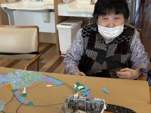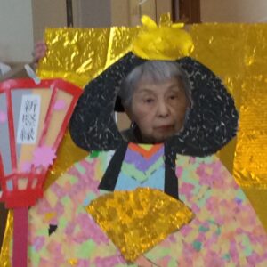 新竪縁小規模多機能ホームでは2月中旬より、この日に向けてお雛様の顔はめパネルを作成していました。