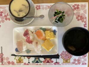 ランチョンマットにお寿司を並べると