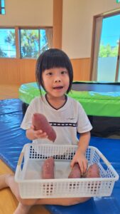 さつまいものヒゲが気になり一本一本丁寧にとっている子も!(^^)